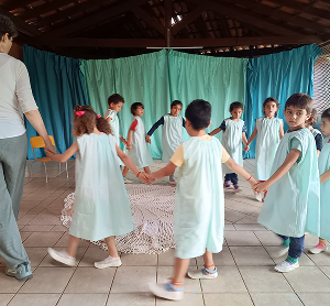 A escola utiliza a Pedagogia Waldorf, que reconhece a infância como uma fase única e essencial para o desenvolvimento humano, valorizando o brincar, a imaginação, o ritmo e as experiências vividas.